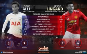 In the build up to Wednesday’s Premier League clash between Tottenham and Manchester United, daily fantasy football game Oulala.com has been looking at the head-to-head between Dele Alli and Jesse Lingard.