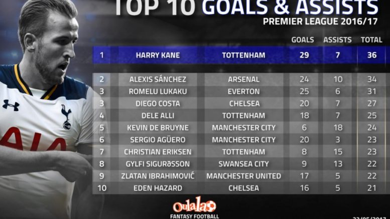 Meanwhile, Tottenham striker Harry Kane was involved in the most Premier League goals during the 2016/17 campaign.
