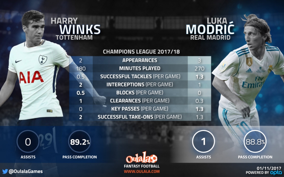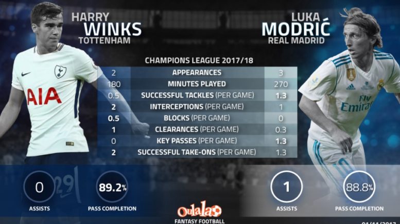 Harry Winks and Luka Modric go head-to-head for the second time in a fortnight when Tottenham play Real Madrid in the Champions League at Wembley on Wednesday night.
