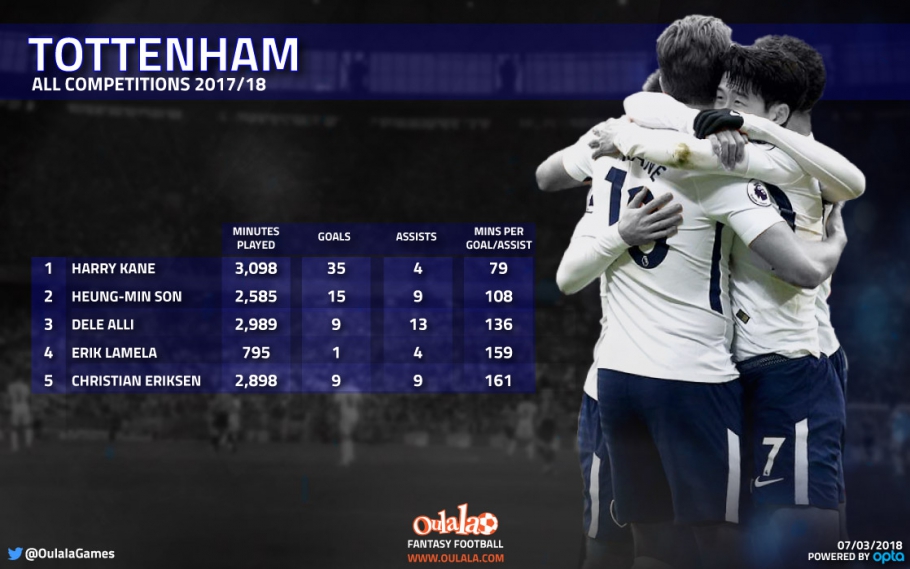 Son Heung-min and the fit-again Erik Lamela have been involved in more goals for Tottenham on a per-minute basis than Christian Eriksen this season, statistics show.